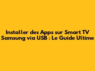 Installer Des Apps Sur Smart TV Samsung Via USB : Le Guide Ultime