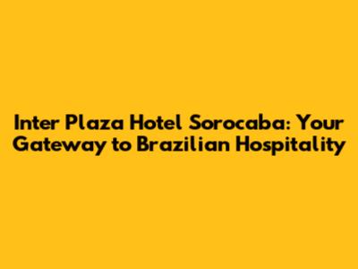 Hey everyone! Planning a trip to Brazil? If you're heading to Sorocaba, a city buzzing with culture and charm, you're in for a treat! And when it comes to finding the perfect place to stay, look no further than the Inter Plaza Hotel Sorocaba. This hotel isn't just a place to rest your head; it's a launchpad for experiencing the best of what Sorocaba has to offer. So, grab your virtual passport, and let's dive into why this hotel should be on your radar. We'll explore everything from the comfy rooms to the cool amenities and why it's a top pick for both leisure and business travelers. Ready to discover your Brazilian home away from home? Let's go!