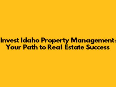 Invest Idaho Property Management: Your Path To Real Estate Success