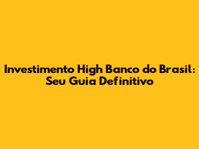 Investimento High No Banco Do Brasil: Guia Completo E Oportunidades