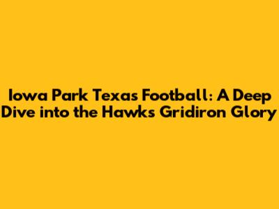 Hey sports fans! Ever heard the roar of the crowd in Iowa Park, Texas? Well, if you haven't, you're missing out on some serious football action. Iowa Park, a small town with a big heart for the game, boasts a football program that's been making waves for years. We're talking about the Iowa Park Hawks, a team that embodies the spirit of Texas high school football: grit, determination, and a whole lot of heart. This article is your all-access pass to the world of Iowa Park football, from its rich history to its current-day stars. So, grab your jersey, get comfortable, and let's dive into the exciting world of the Hawks!