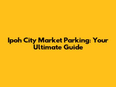Ipoh City Market Parking: Your Ultimate Guide