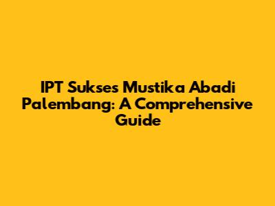 IPT Sukses Mustika Abadi Palembang: Your Ultimate Guide
