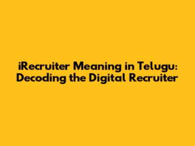 • Availability: Due to the relatively new and evolving nature of the term, you may not find a dedicated, comprehensive PDF explaining "iRecruiter meaning in Telugu." However, there are tons of resources available online.