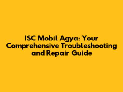 ISC Mobil Agya: Ultimate Guide To Troubleshooting & Repair