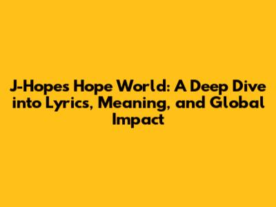 J-Hope's Hope World: Lyrics, Meaning, And Impact