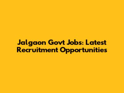 Jalgaon Govt Jobs: Latest Recruitment Opportunities