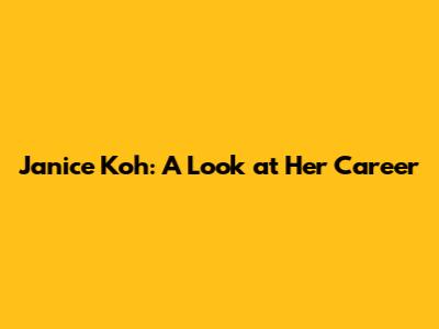 Janice Koh: A Look At Her Career