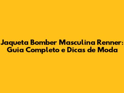 Jaqueta Bomber Masculina Renner: Guia Completo E Dicas De Moda