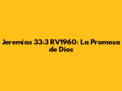 ¿Qué Dice Jeremías 33:3 RV1960?