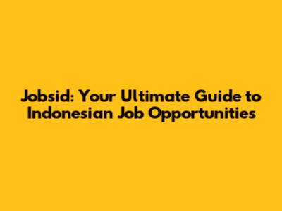 Jobsid: Your Ultimate Guide To Indonesian Job Opportunities