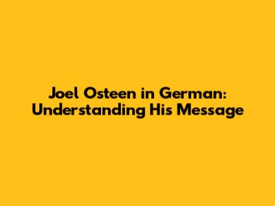 Joel Osteen In German: Insights And Impact