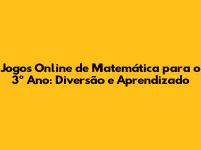 Jogos Online De Matemática Para O 3º Ano: Diversão E Aprendizado