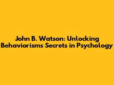 John B. Watson: Unlocking Behaviorism's Secrets In Psychology