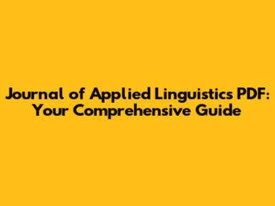 Journal Of Applied Linguistics: Your PDF Guide