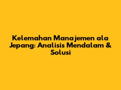Kelemahan Manajemen ala Jepang – Mari kita bedah lebih dalam tentang gaya manajemen ala Jepang yang ikonik, yuk, guys! Kita semua tahu, Jepang punya reputasi luar biasa dalam hal efisiensi, kualitas, dan inovasi. Tapi, seperti halnya sistem apa pun, manajemen ala Jepang juga punya kelemahan yang perlu kita telaah. Dalam artikel ini, kita akan menyelami lebih dalam berbagai aspek dari kelemahan manajemen ala Jepang, mulai dari budaya kerja yang intens, pengambilan keputusan yang lambat, hingga tantangan dalam beradaptasi dengan perubahan. Tujuannya? Agar kita bisa mengambil pelajaran berharga dan mengadopsi elemen terbaiknya sambil menghindari jebakan-jebakan yang ada.
