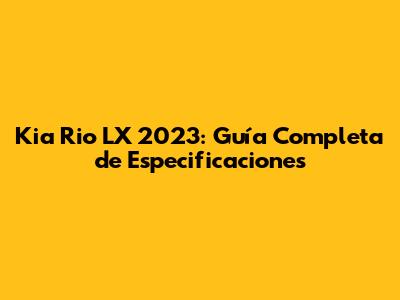 Kia Rio LX 2023: Guía Completa De Especificaciones