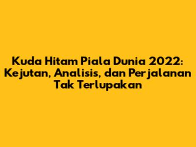 Piala Dunia 2022 memberikan banyak pelajaran berharga tentang pentingnya persiapan matang, taktik yang efektif, dan kemampuan untuk tampil maksimal di saat yang tepat. Tim kuda hitam menunjukkan bahwa dengan kerja keras, semangat juang, dan strategi yang tepat, semua tim memiliki peluang untuk bersaing di panggung dunia. Analisis terhadap performa mereka menjadi inspirasi bagi tim-tim lain untuk berani bermimpi dan berusaha mencapai kesuksesan.