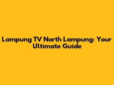 Lampung TV North Lampung: Your Guide To Local News & More!