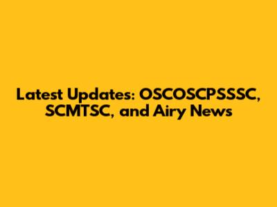Latest Updates: OSCOSCPSSSC, SCMTSC, And Airy News