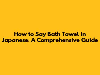 Learn Japanese: How To Say 'Bath Towel' And More!