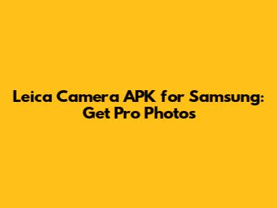 Leica Camera APK For Samsung: Get Pro Photos