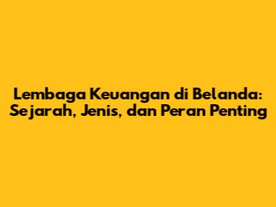 Lembaga Keuangan Di Belanda: Sejarah, Jenis, Dan Peran Penting