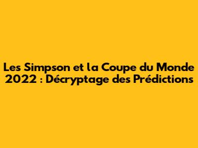 Salut les amis ! Prêts à plonger dans le monde fascinant des prédictions des Simpson ? On va explorer ensemble comment cette série animée emblématique a, à plusieurs reprises, semblé prédire des événements futurs, et notamment, si leurs visions se sont concrétisées pour la Coupe du Monde 2022. Accrochez-vous, car on va décortiquer tout ça avec un brin d'humour et beaucoup de curiosité. Les Simpson sont connus pour leurs épisodes prophétiques, allant des élections présidentielles américaines aux avancées technologiques. Mais qu'en est-il du football ? Ont-ils vu juste pour la compétition phare du ballon rond ? C'est ce qu'on va découvrir ! On va aussi se pencher sur les méthodes utilisées par les fans pour décrypter ces prédictions et ce qui se cache derrière cette fascination collective pour les visions de Springfield. On vous dévoile tout, des coïncidences troublantes aux interprétations les plus audacieuses.