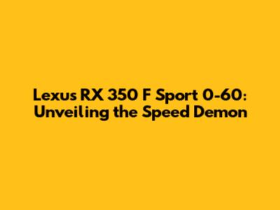 Hey guys, let's dive into the world of the Lexus RX 350 F Sport and its impressive 0-60 mph sprint. This article is your ultimate guide, breaking down everything you need to know about its performance, from raw power to real-world driving experiences. We'll explore the engine, handling, and overall driving dynamics that make the F Sport a standout choice in the luxury SUV segment. So, buckle up, because we're about to explore what makes this vehicle so awesome!
