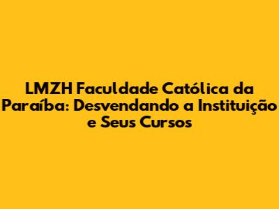 LMZH Faculdade Católica Da Paraíba: Tudo O Que Você Precisa Saber