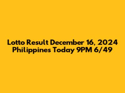 Lotto Result: December 16, 2024 (Philippines 9PM 6/49)