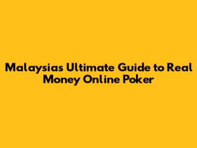 Malaysia's Ultimate Guide To Real Money Online Poker