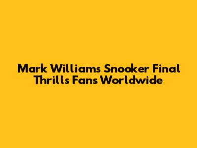 Mark Williams Triumphs! Snooker Final Thrills