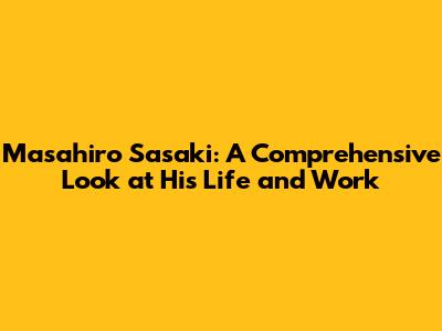Masahiro Sasaki: A Comprehensive Look At His Life And Work