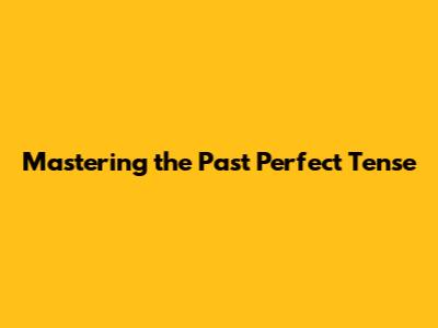 Mastering The Past Perfect Tense