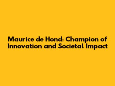 Maurice De Hond: Champion Of Innovation And Societal Impact