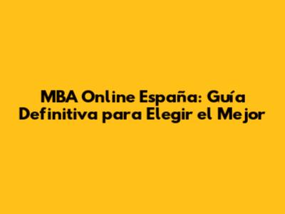 MBA Online España: Guía Definitiva Para Elegir El Mejor