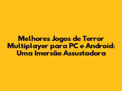 Melhores Jogos De Terror Multiplayer Para PC E Android