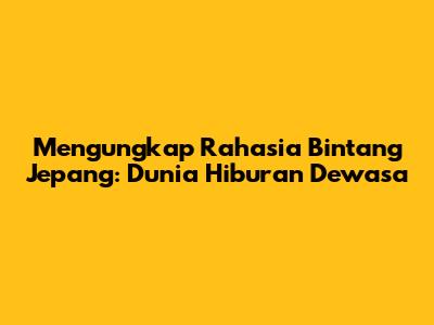 Mengungkap Rahasia Bintang Jepang: Dunia Hiburan Dewasa