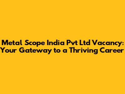 Are you seeking exciting career opportunities in a dynamic and growing company? Look no further! In this article, we'll delve into the world of Metal Scope India Pvt Ltd, exploring the current vacancies, the company culture, and how you can become a part of their innovative team. Metal Scope India Pvt Ltd has a lot of vacancies this 2024. They are looking for passionate individuals. They have a lot of job opportunities you can choose from. Metal Scope India Pvt Ltd is a great company to work for, so you should not miss this chance.