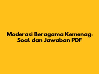 Moderasi Beragama Kemenag: Soal Dan Jawaban PDF