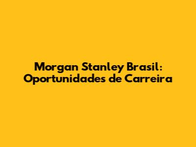 Morgan Stanley Brasil: Oportunidades De Carreira