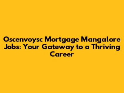 How to Find and Apply for Oscenvoysc Mortgage Jobs in Mangalore