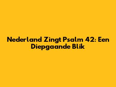 Nederland Zingt Psalm 42: Een Diepgaande Blik