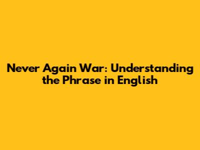 Never Again War: Understanding The Phrase In English
