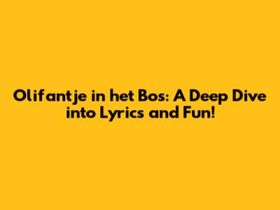 Olifantje In Het Bos: Song Lyrics & Fun Facts!