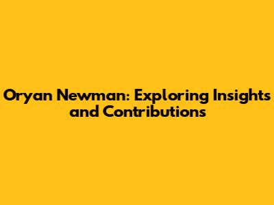 Oryan Newman: Exploring Insights And Contributions