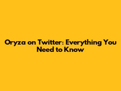 Oryza On Twitter: Everything You Need To Know