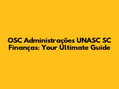 Hey guys! Let's dive into the world of OSC Administrações UNASC SC Finanças. If you're scratching your head wondering what this is all about, you're in the right place. This comprehensive guide will break down everything you need to know in a way that’s easy to understand and super useful. We'll cover what OSC Administrações is, how it relates to UNASC, and how SC Finanças plays a crucial role. So, buckle up, and let’s get started!