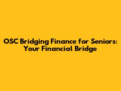 OSC Bridging Finance For Seniors: Your Financial Bridge